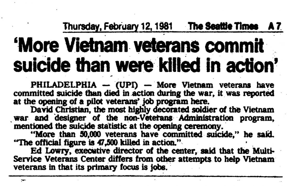 More Vietnam Veterans Commit Suicide than Were Killed in Action (Document)